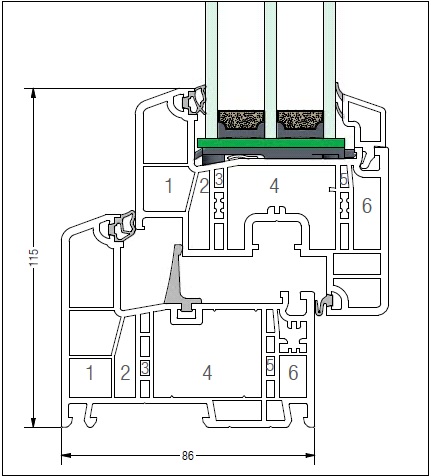 • Adancime mare a faltului de 66 mm permite montarea de geam termoizolant triplu (3 foi de sticla)